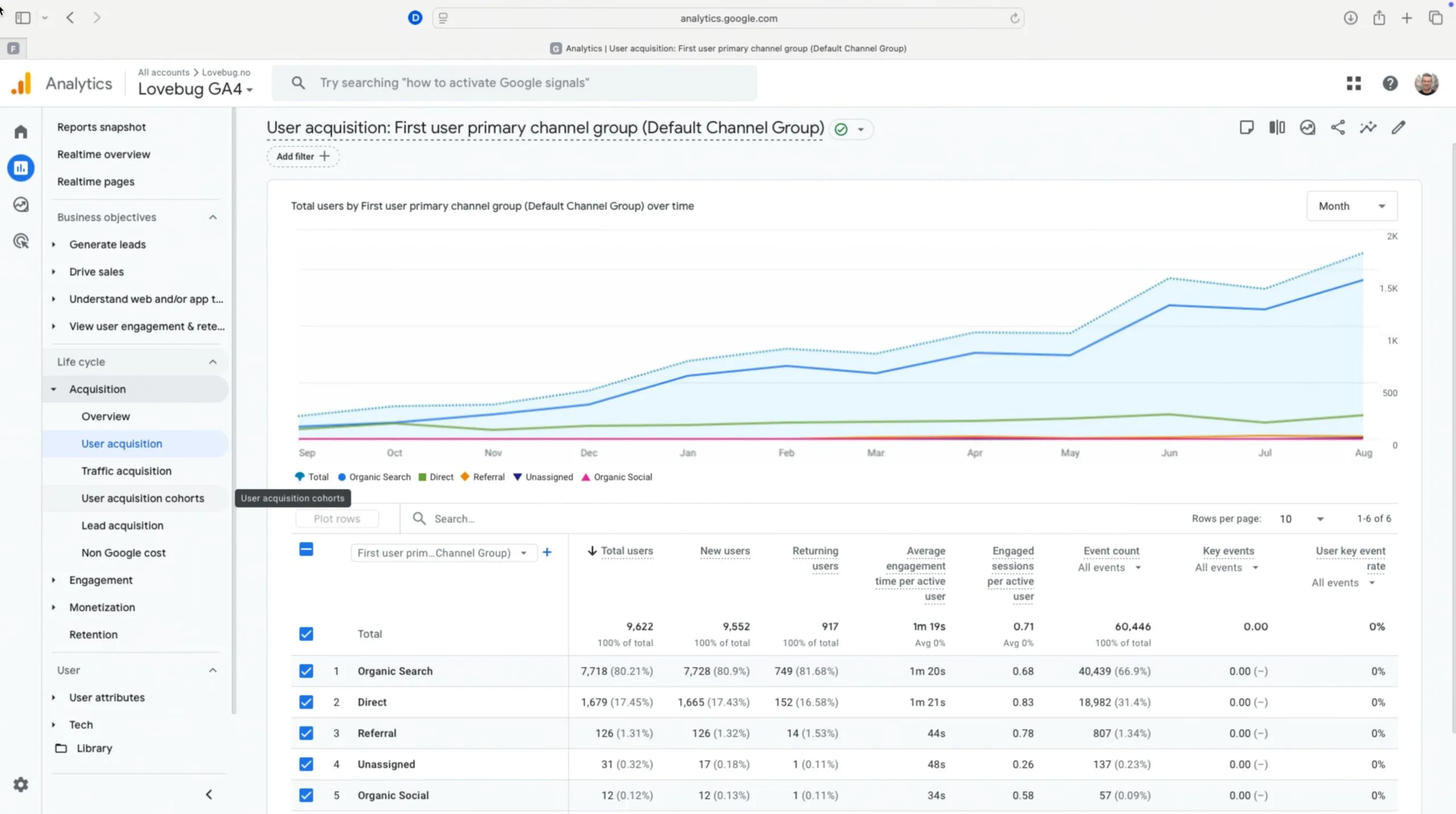 En vekst på 4900% er ikke tilfeldig. Bak disse tallene ligger datadrevet søkemotoroptimalisering med fokus på produksjon av godt innhold og styrking av Lovebug.no´s domeneautoritet. Statistikken nedenfor gjelder perioden 1.9.24 - 31.8.25 og er publisert med tillatelse fra Lovebug.no