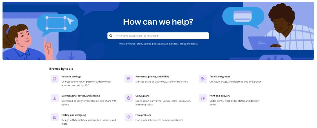 Canva-hjelpesenteret er en nyttig ressurs for å finne svar på spørsmål. Her kan du:
