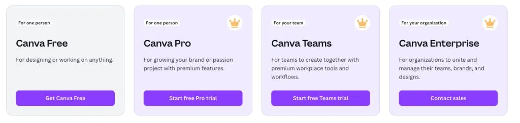 Canva tilbyr flere abonnementer, inkludert: